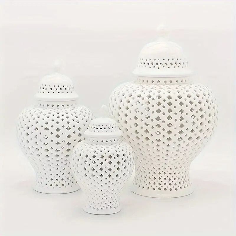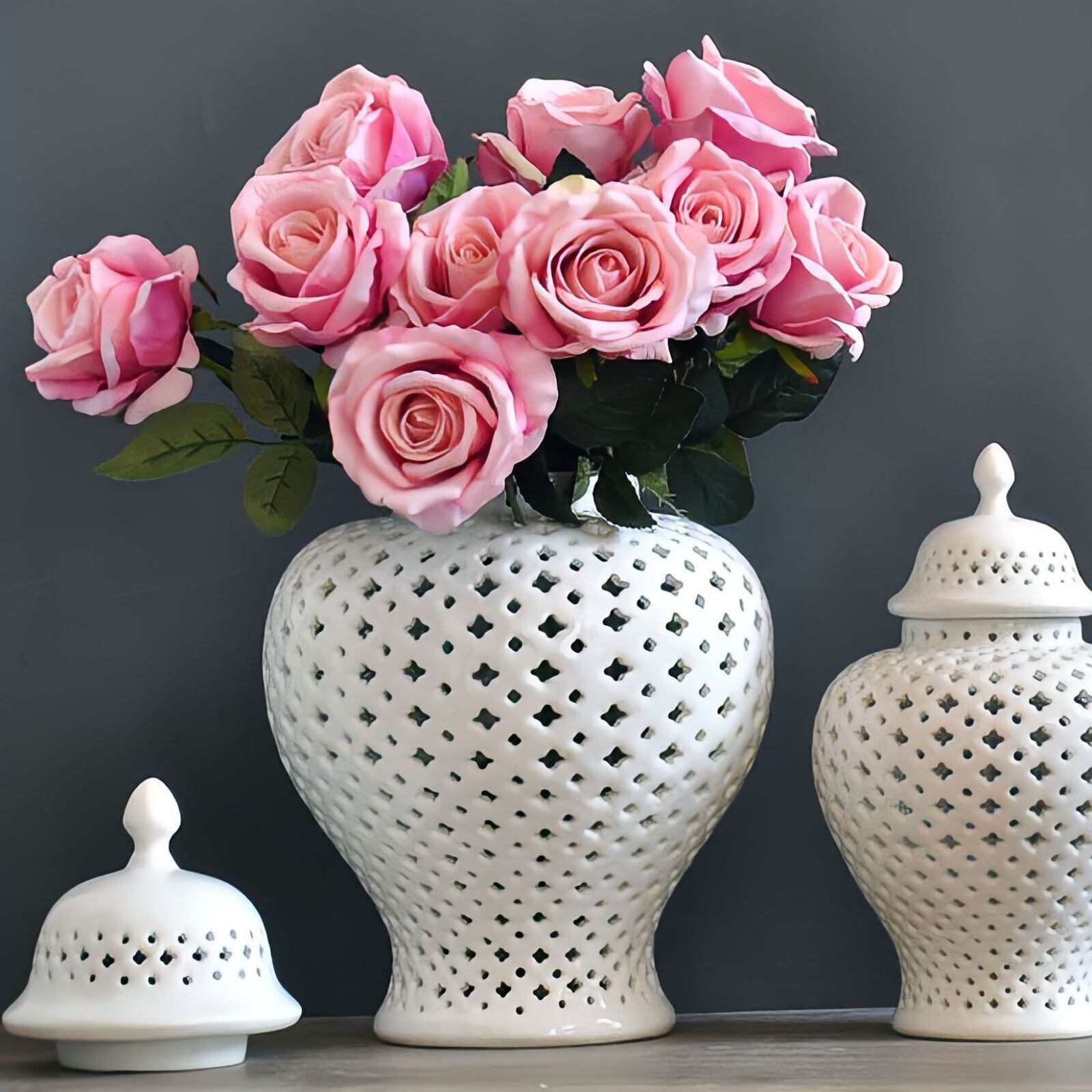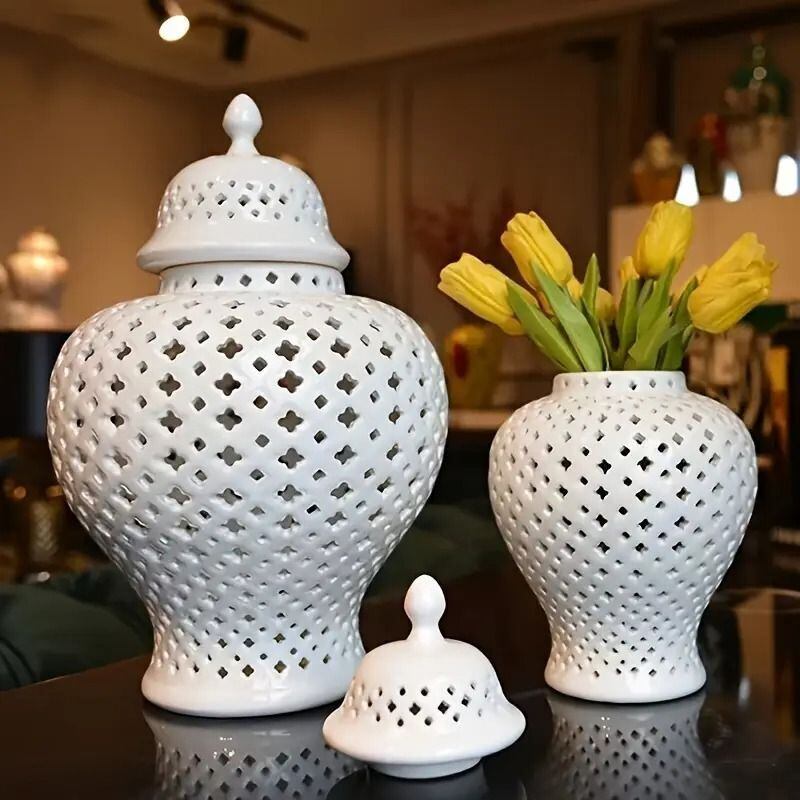 小物入れ フラワーベース 蓋付 花瓶 飾り壺 インテリア雑貨 装飾品 キャンディポット セラミック オリエンタル ヴィンテージ レトロ おしゃれ 置物 ホームデコレーション 中空 花 ポット オブジェ アレンジメント Lサイズ 32×48cm | mellland インテリア 雑貨