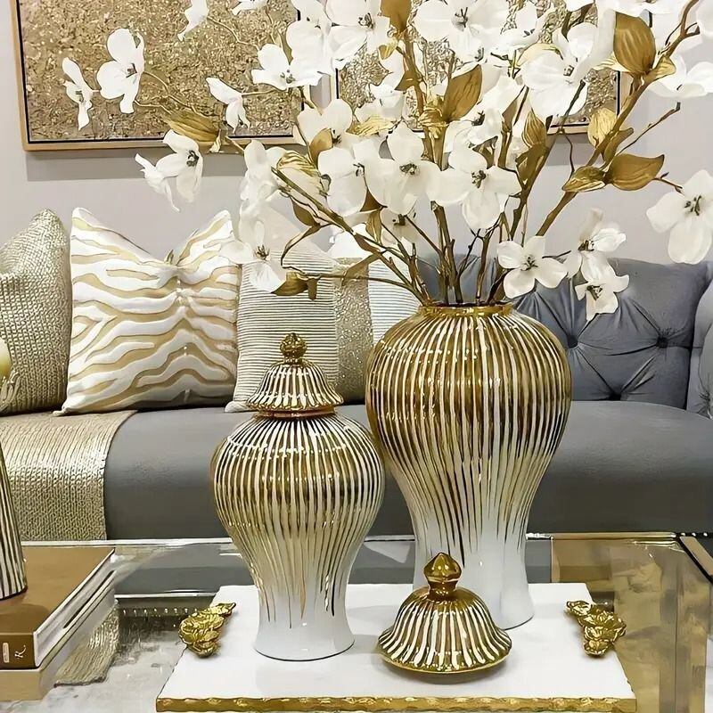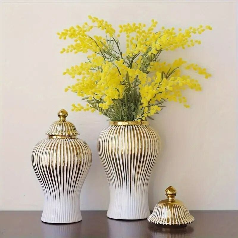 花瓶 花器 フラワーベース ジンジャーポット 蓋付き 飾り壺 収納ポット セラミック フラワーホルダー インテリア雑貨 おしゃれ 装飾 フラワーアレンジメント 飾り物 リビングルーム ダイニングルーム 20×42cm | mellland インテリア 雑貨