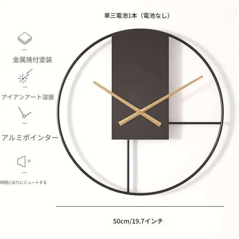 壁掛け時計 クロック 時計 モダン おしゃれ サイレント 静音 掛け時計 ウォールクロック 壁掛け インテリア時計 北欧 シンプル スタイリッシュ 電池式 リビング ダイニング 贈り物 ギフト 直径50cm | mellland インテリア 雑貨