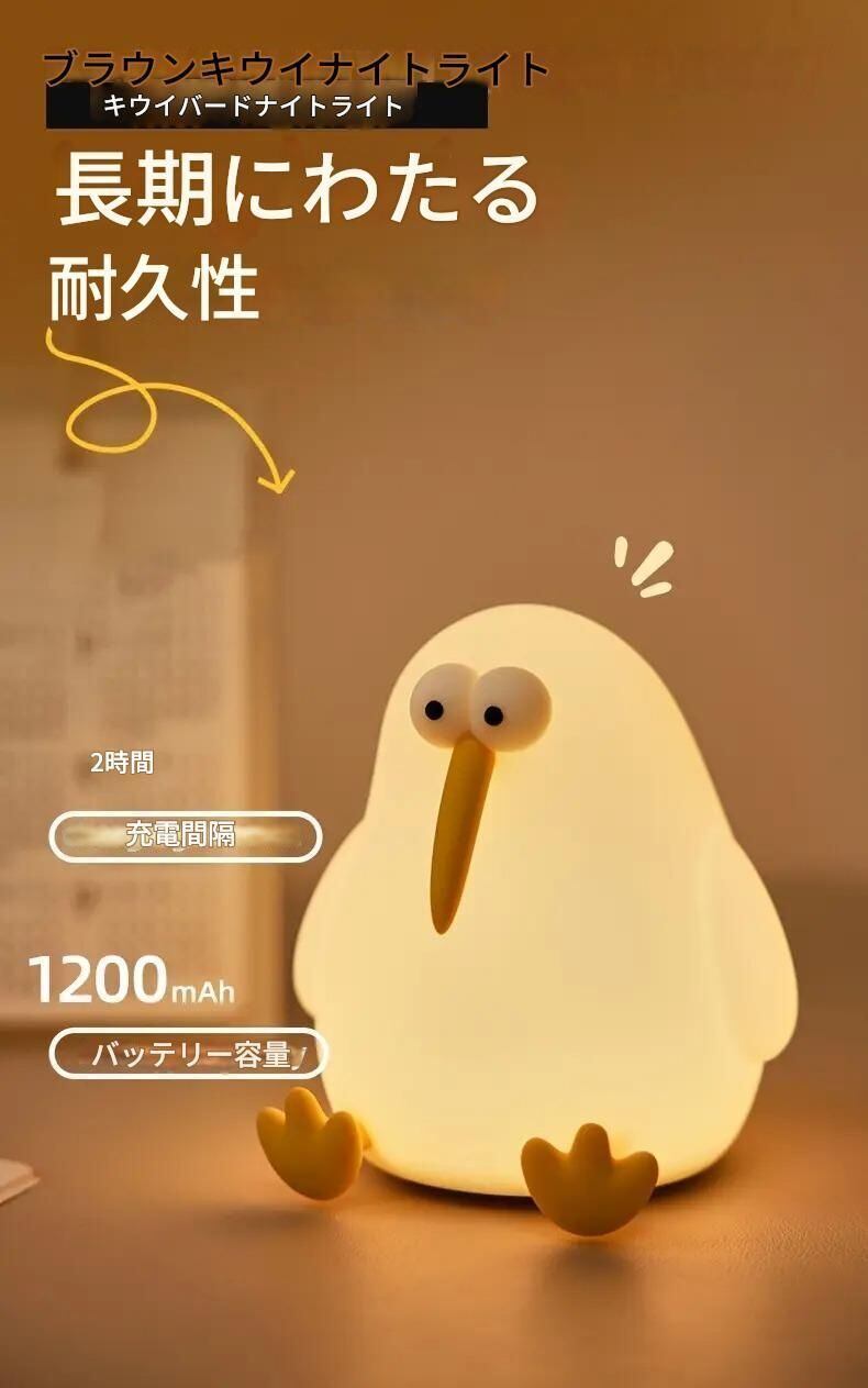 おしゃれでかわいいデザインのナイトライト、キウイバード型の卓上ライトです。3段階の明るさ調整機能が付いており、タッチで簡単に調光可能!リビングやベッドサイド、子供部屋など、様々なシーンで活躍します。シリコン素材を使用しており、柔らかな質感が手に馴染むため、お子様にも安心です。USB充電に対応していて、持ち運びも簡単ですので、アウトドアや旅行先でも活用できます。リラックスできる優しい光で、心地よい雰囲気を演出してみませんか?