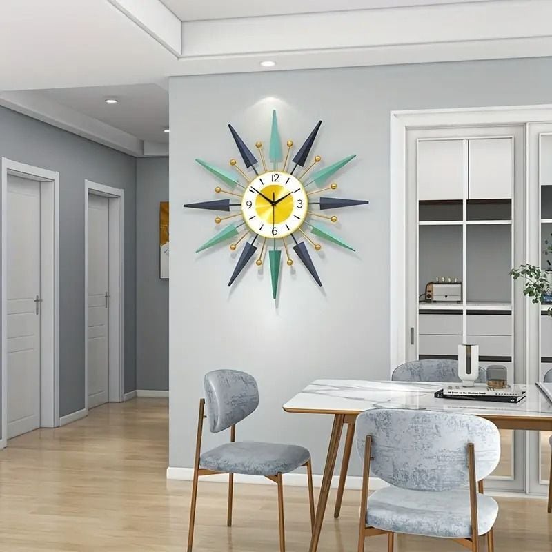 壁掛け時計 インテリア 時計 メタル 掛け時計 クリエイティブ 北欧 モダン おしゃれ 静音 ウォールクロック 壁時計 サンバースト 高級感 デザイン 壁飾り リビング 寝室 オフィス 電池式 60*60cm | mellland インテリア 雑貨