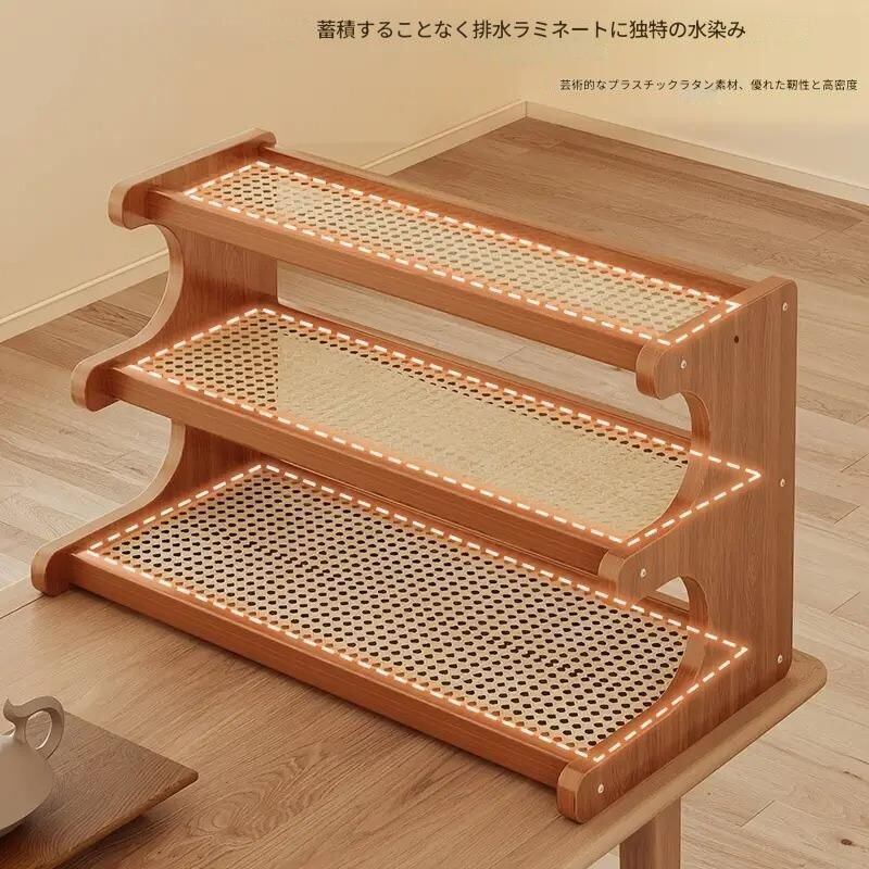 木目の美しさが魅力的な木製ラックは、ナチュラルでシンプルなデザインが特徴の収納アイテムです。卓上やキッチン、リビングなど、さまざまな場所で使いやすく、調味料や小物、文房具などの整理整頓に最適です。おしゃれで落ち着いた雰囲気は、インテリアとしても映え、機能性とデザイン性を両立しています。持ち運びしやすく、組み立ても簡単なので手軽にご使用いただけます。キッチンラックやデスク収納としてはもちろん、ディスプレイラックとしてお気に入りのアイテムを飾るのにもぴったり。省スペースながらも効率的な収納をサポートする便利なラックです。