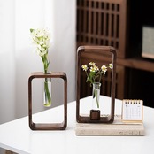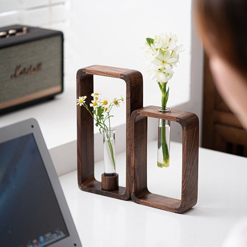 フラワーベース 花器 一輪挿し 花瓶 モダン おしゃれ ナチュラル 北欧 シンプル 無垢材 ウッドフレーム 木製 ガラス ミニマル デザイン 卓上 コンパクト インテリア雑貨 リビング 玄関 デスク 装飾 Sサイズ | mellland インテリア 雑貨